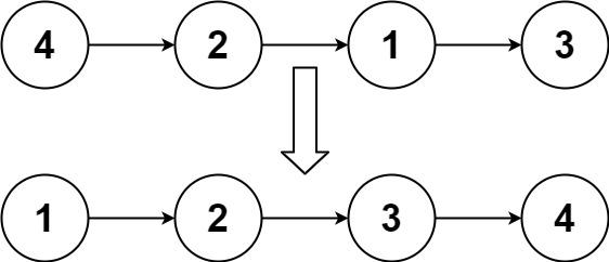 **输入:**head = [4,2,1,3] 输出:[1,2,3,4]